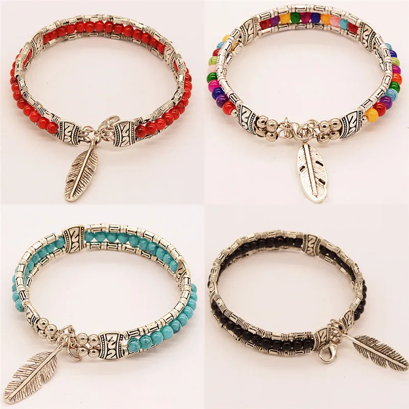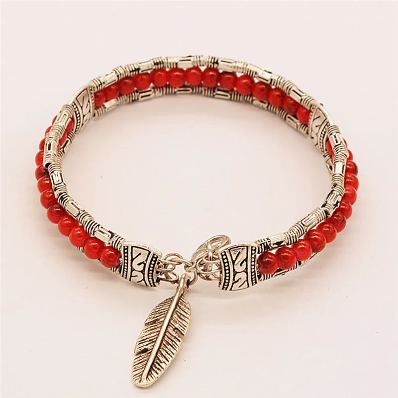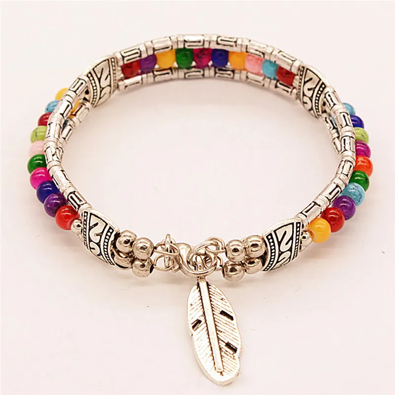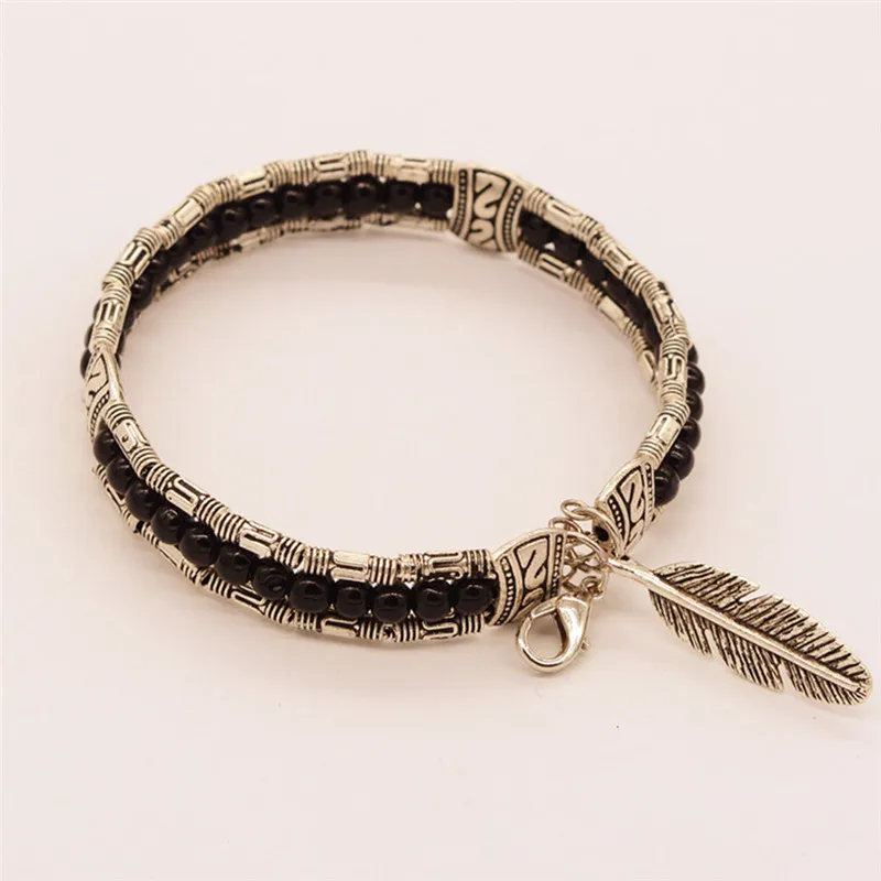 JETTING Fashion Tibetan Silver Feather Gypsy Women Bangle Vintage Bohemian Bracelet.